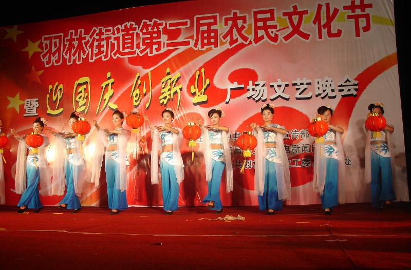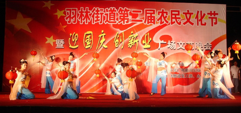 2008年9月24日晚,在新昌江濱公園舉辦了羽林街道第二屆農民文化節暨迎國慶創新業廣場文藝晚會。本次活動共有14個節目,我公司積極參與了本次活動,同時參與的單位還有新昌制藥、新和成、皮爾軸承等企事業單位。活動現場氣氛熱鬧非凡,舞臺正前方是兩排嘉賓席,在座的有縣里的領導等,整個舞臺被圍的水泄不通,廣場上人頭攢動,密密麻麻全是前去欣賞活動節目的觀眾。節目一個接一個,甚是精彩,輪到我公司時,一曲春江花月夜,優美的旋律加上我們京新姑娘柔美整齊的舞姿,令全場觀眾驚嘆!