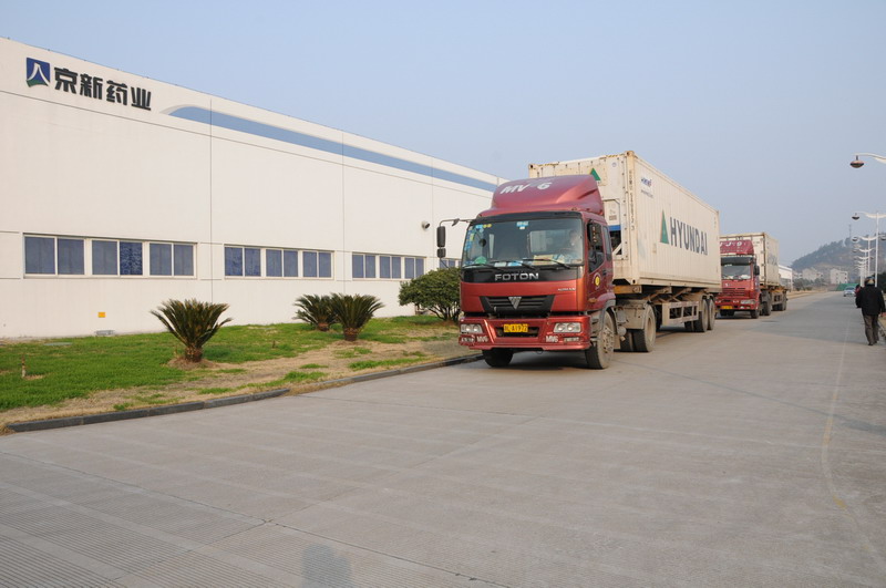 3月2日二輛20尺40尺的冷柜集裝箱車停放在藥品制造公司倉庫門口,師傅們正忙著裝車……2011年度首批出口歐盟的外貿制劑產品即將整裝待發,這對于浙江京新藥業股份有限公司來說是一個多么不平常的日子呀!