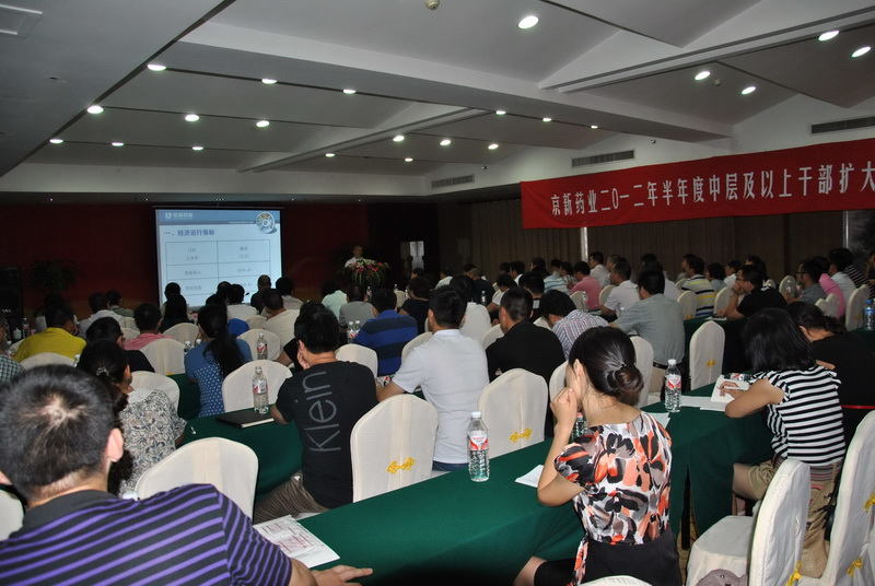 會議首先表彰了獲得2011年度縣級及以上榮譽的先進(jìn)集體和個人。接著,上虞京新、廣豐京新、原料藥銷售公司、藥品銷售公司、藥品制造公司、內(nèi)蒙古京新6個分子公司總經(jīng)理和研發(fā)中心主任向大會作半年度工作述職,與會高管、被評價人下屬和主要業(yè)務(wù)聯(lián)系部門負(fù)責(zé)人對他們工作績效進(jìn)行評價打分。