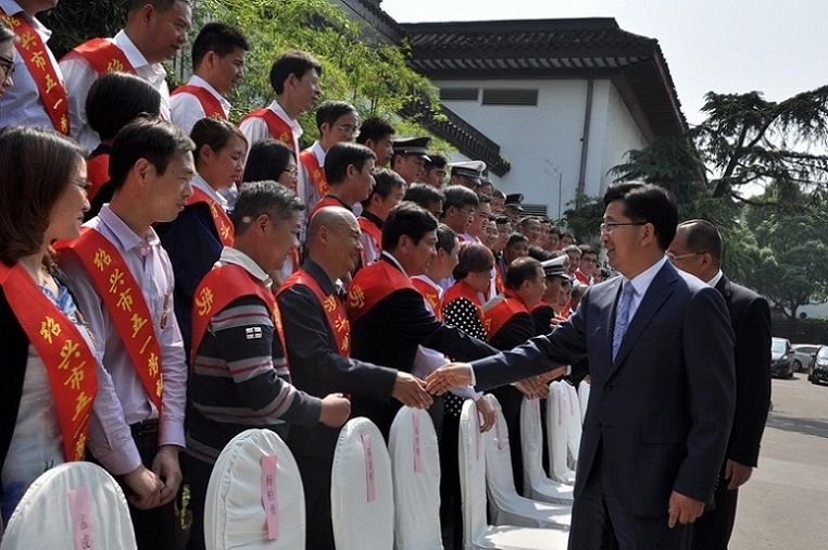 紹興市委書記陳金彪與董事長呂鋼握手市領導與2015年全國勞模、先進工作者和省市“五一”勞動獎狀(獎章)獲得者合影