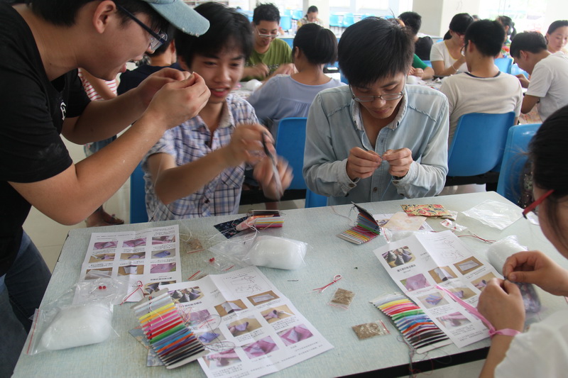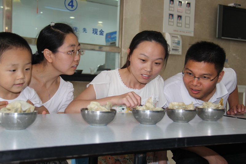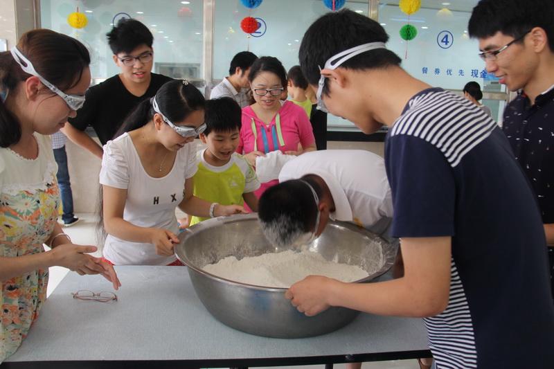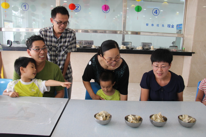活動地點設在公司食堂,五色的燈籠把職工食堂裝點得溫馨祥和,彌漫著濃厚的節日氛圍。節目豐富多彩:“眾星拱月”——斯文的大學生無論男女,全然不顧形象,一頭扎進面粉堆中尋找“圓月”;“心驚肉跳”——臨時組建家庭精心挑選,分享品嘗混有“驚喜”的餃子;“團隊協作”——四人兩兩手綁手合作包餃子;DIY——親自縫制精美的香袋……經過四輪合作比拼,各個獎項花落各家,都收獲了精美的禮品和滿滿的祝福。