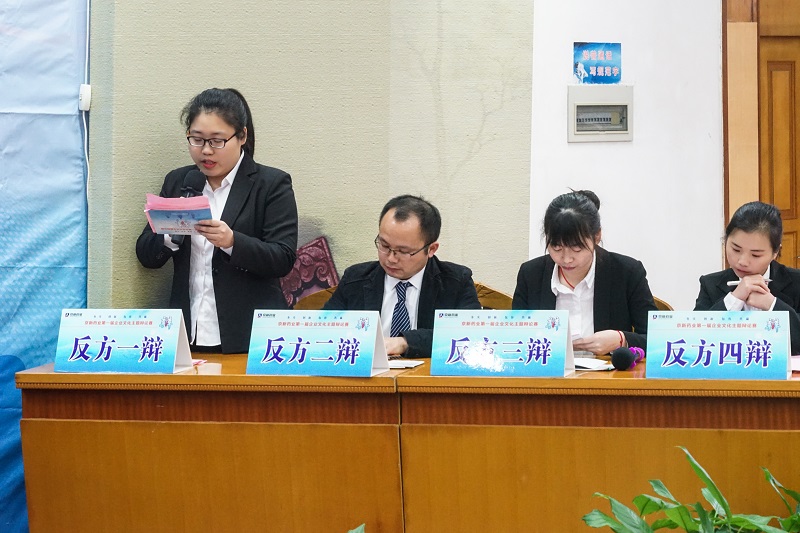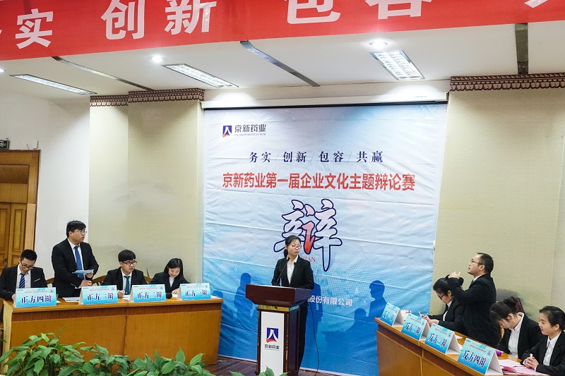 12月15日,京新藥業第一屆企業文化主題辯論賽半決賽如期舉行,經過初賽、加賽的激烈角逐,四強隊伍脫穎而出,為我們呈現了一次更為精彩的思想碰撞。比賽特邀新昌中學原語文教學組組長、資深語文教育專家潘國仁老師、新昌中學原語文教學組組長、資深語文語言專家俞雅麗老師、新昌中學政教處副主任、政治老師王玉瑛、新昌中學語文老師梁珂菡及求旭麗、新昌中學政治老師張鳳珍、公司黨委副書記孔慶豐等領導出席并擔任評委,近200余員工現場觀戰。